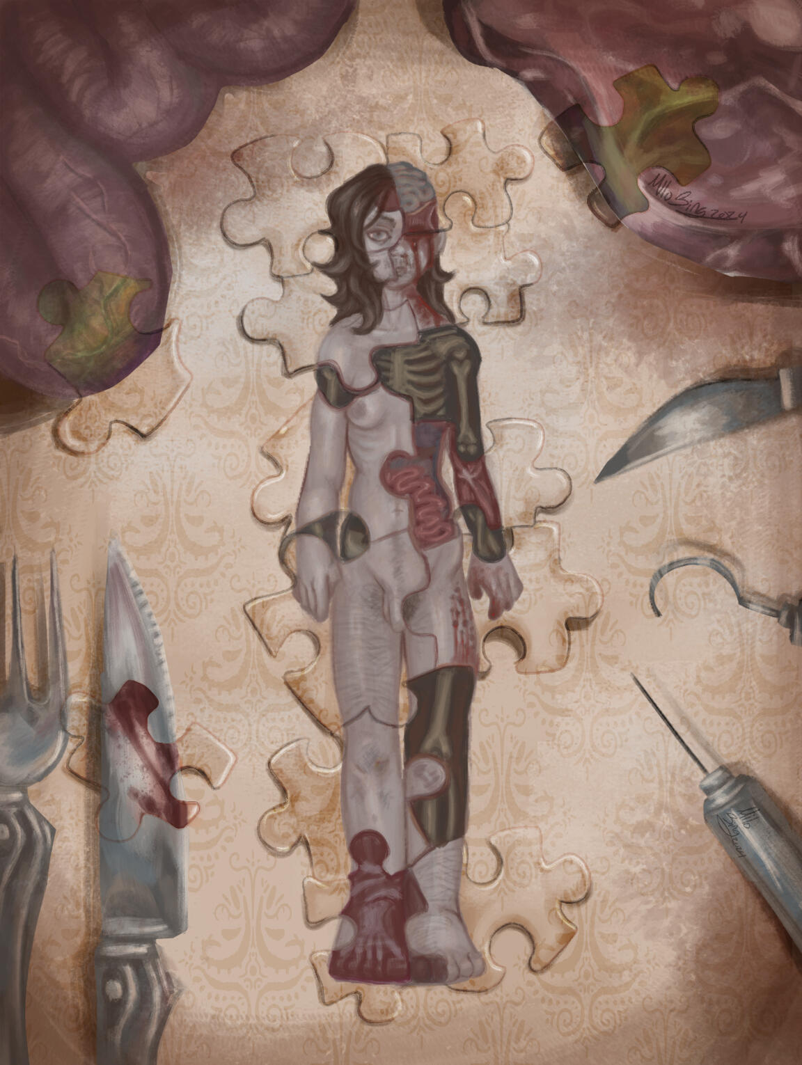 "The subtext is transparent: when looked at objectively, humans are really no more than an amalgam of organs and body parts."