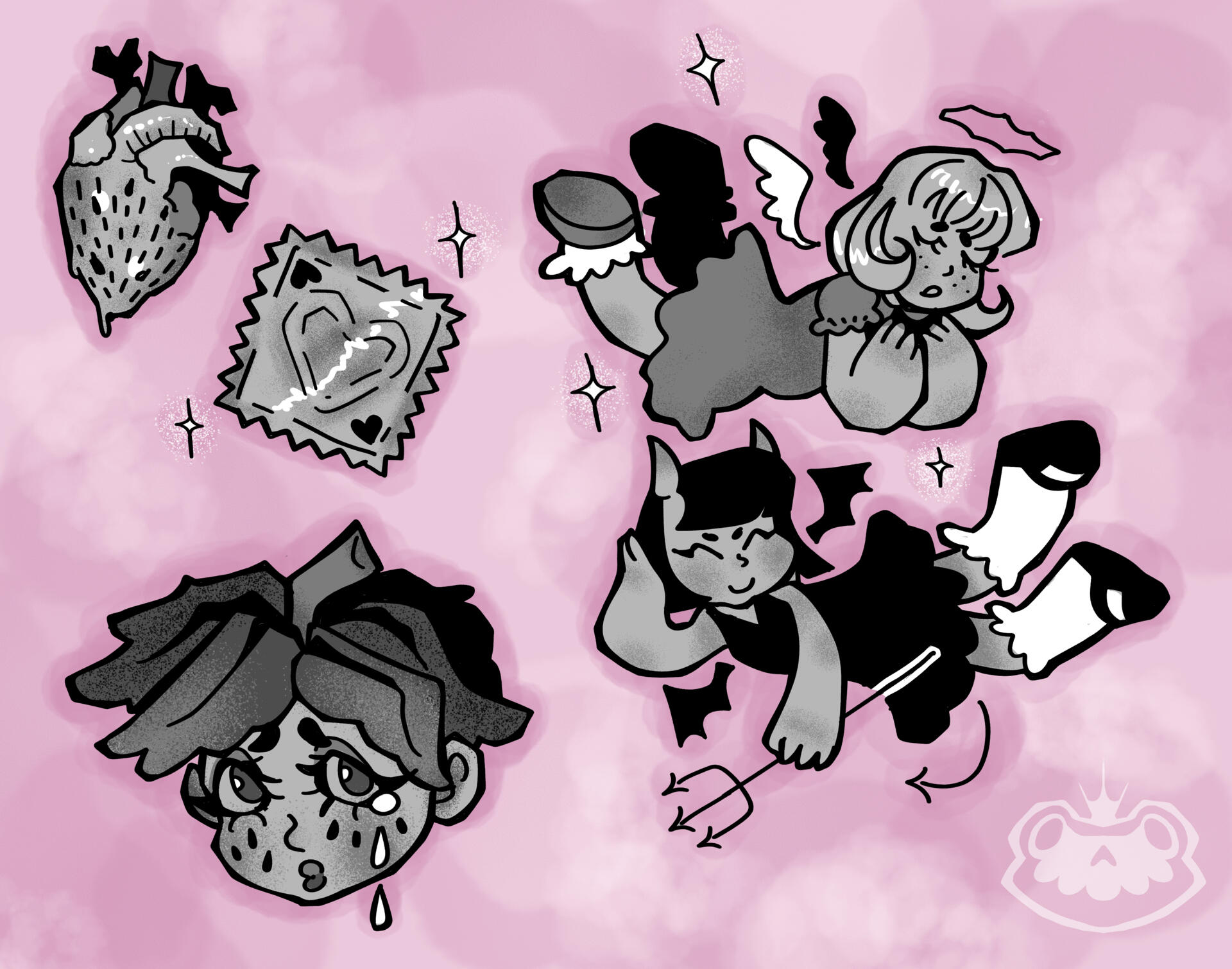 Born in the Pacific Northwest, I’m an artist who loves to put whimsy into the creative process.I love to express myself through my artwork, and help others express themselves! I'm always exploring a variety of mediums, as I like to convince myself that I have the ability to create anything, using anything, with enough practice and experimenting.I have a love for the dark, spooky, spiritual and occult, as I'm always looking for an excuse to draw gore and meaty textures.I'm incredibly passionate about the beauty and power of the human body. I love painting queer representations, experiences, and expressions of sex, and i'm never afraid to illustrate nudity or eroticism.